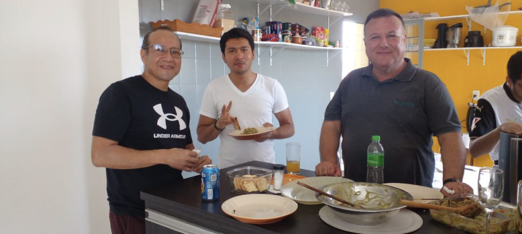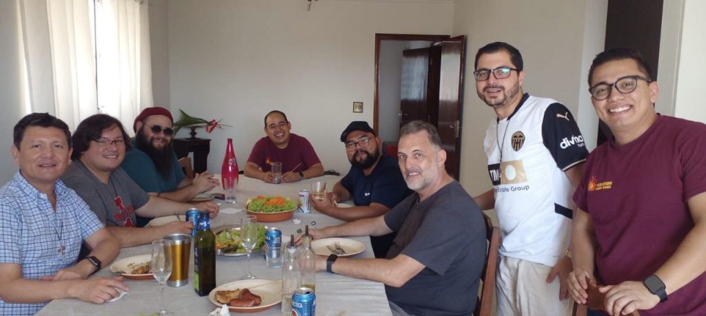 Los primeros días, como tuvimos que esperar la conclusión de la remodelación de la casa, vivimos en la casa del diácono permanente Pedro, quien es viudo y quien con mucha alegría nos recibió y nos ofreció con generosidad lo que tenía. También nos favoreció a tener una entrada a la parroquia de una forma diferente, pues visitamos las casas de las personas que nos ofrecieron algún café, merienda, comida o cena. Fue una experiencia muy rica y variada, pues personas de 99 y 94 años, aún activas y lúcidas nos cocinaron y conversaron amablemente con nosotros.
