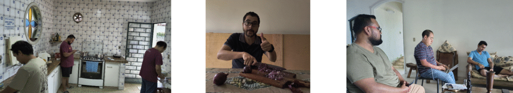 Pasamos un par de días en el departamento, y el miércoles nos mudamos a una casa de descanso fuera de la ciudad (en São José da Lapa), pues esa casa es más amplia. Seguimos esperando que terminen los trabajos en nuestra casa de la Pampulha, mientras tanto estamos en moradas provisionales. Llegamos y han sido días fuera de lo común: tener espacios personales, trabajar en nuestro proyecto comunitario, dar vueltas a la ciudad para resolver pendientes como hacer el super o lavar ropa, o ir a la facultad para seguir con trámites de revalidación de los hermanos Jesús y Alejandro. En medio del caos y la calma vamos viviendo la vida como se presenta, a veces pasar un rato en la alberca o saliendo a caminar, con peripecias y todo, pero seguimos construyendo la comunidad juntos.