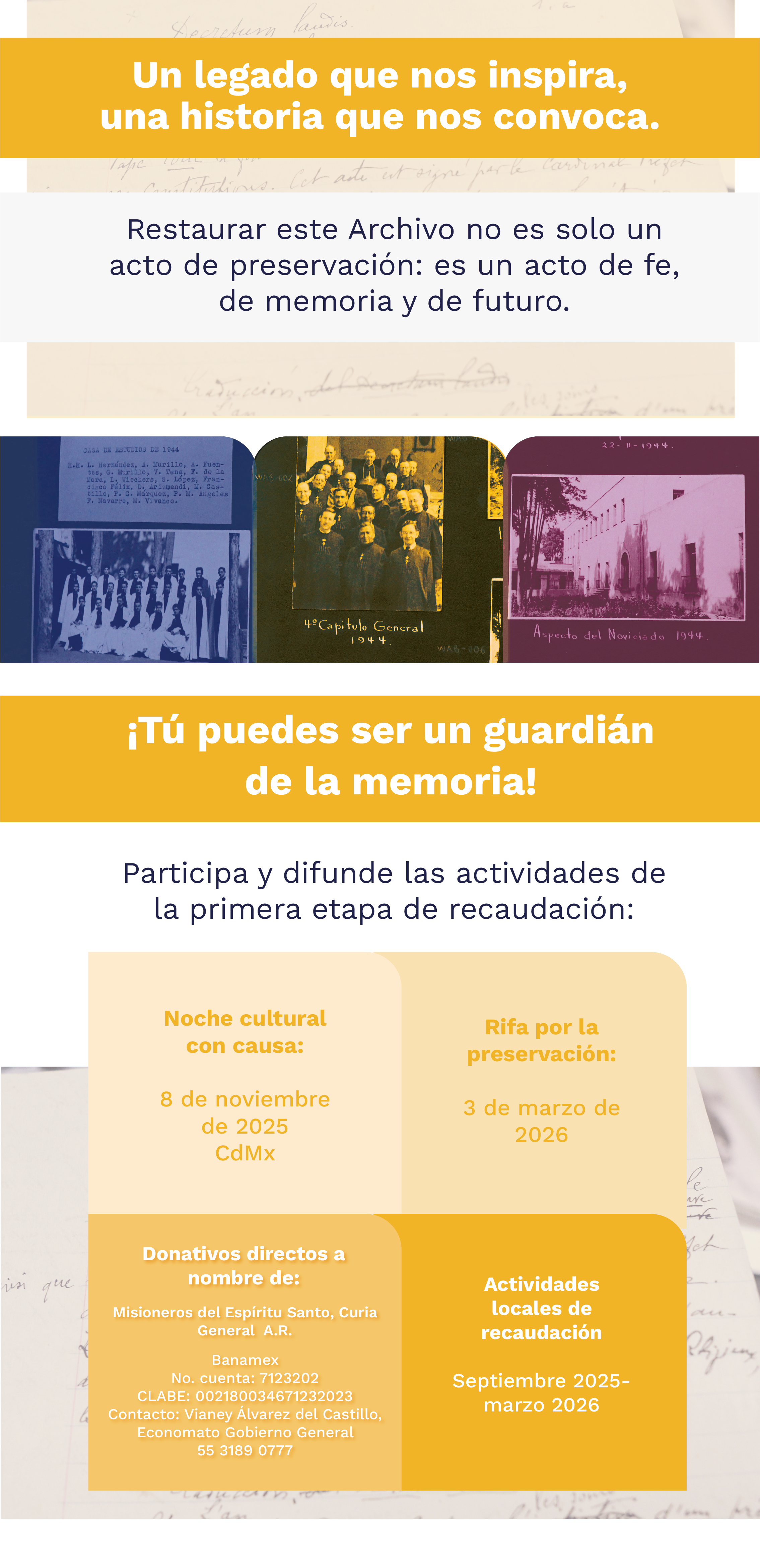 Por último, les comentamos que después de haber atendido por muchos años el Templo de la Concepción, en el centro de Puebla, el próximo año, el 6 de septiembre, celebraremos los 50 años de haberse fundado la Comunidad de Misioneros del Espíritu Santo en Huexotitla.