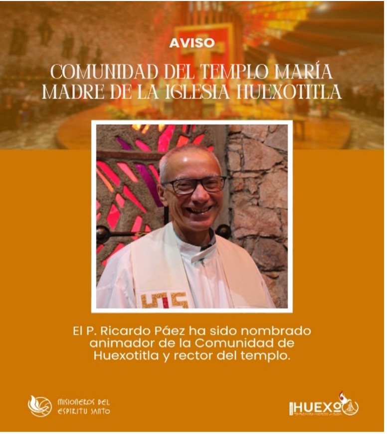 Iniciamos el mes de agosto conociendo el nombramiento del P. Ricardo Páez, M.Sp.S., como nuevo Animador de nuestra Comunidad Religiosa en Huexotitla.
